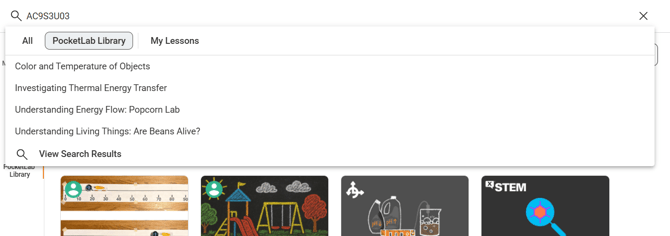 Within PocketLab Notebook, you can use the search bar located at the top to search by a specific ACARA Standard, topic, or keyword.